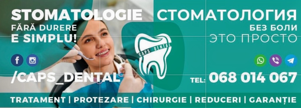 Clinica stomatologică ”CAPS DENTAL” vă oferă tratamente stomatologice complexe din toată sfera stomatologică ambulatorie. Activitatea Clinicii este susținută de o echipă formată din medici stomatologi specializați în chirurgie oro-maxilo-facială, implantologie, protetică, endodonție, parodontologie, ortodonţie, cosmetică dentară.
